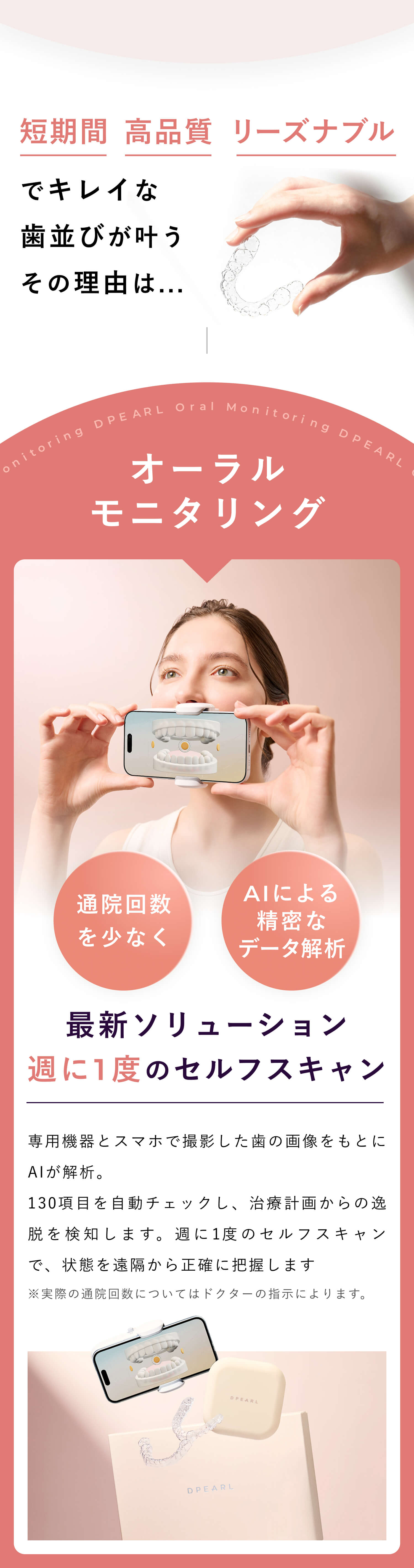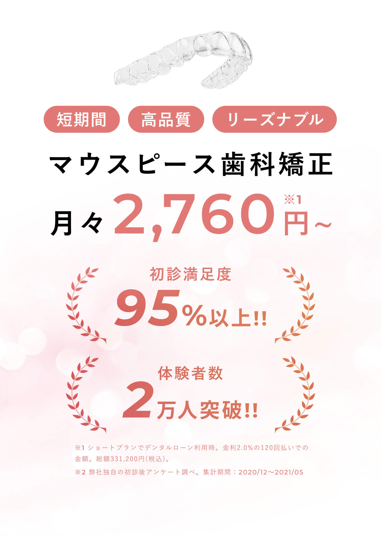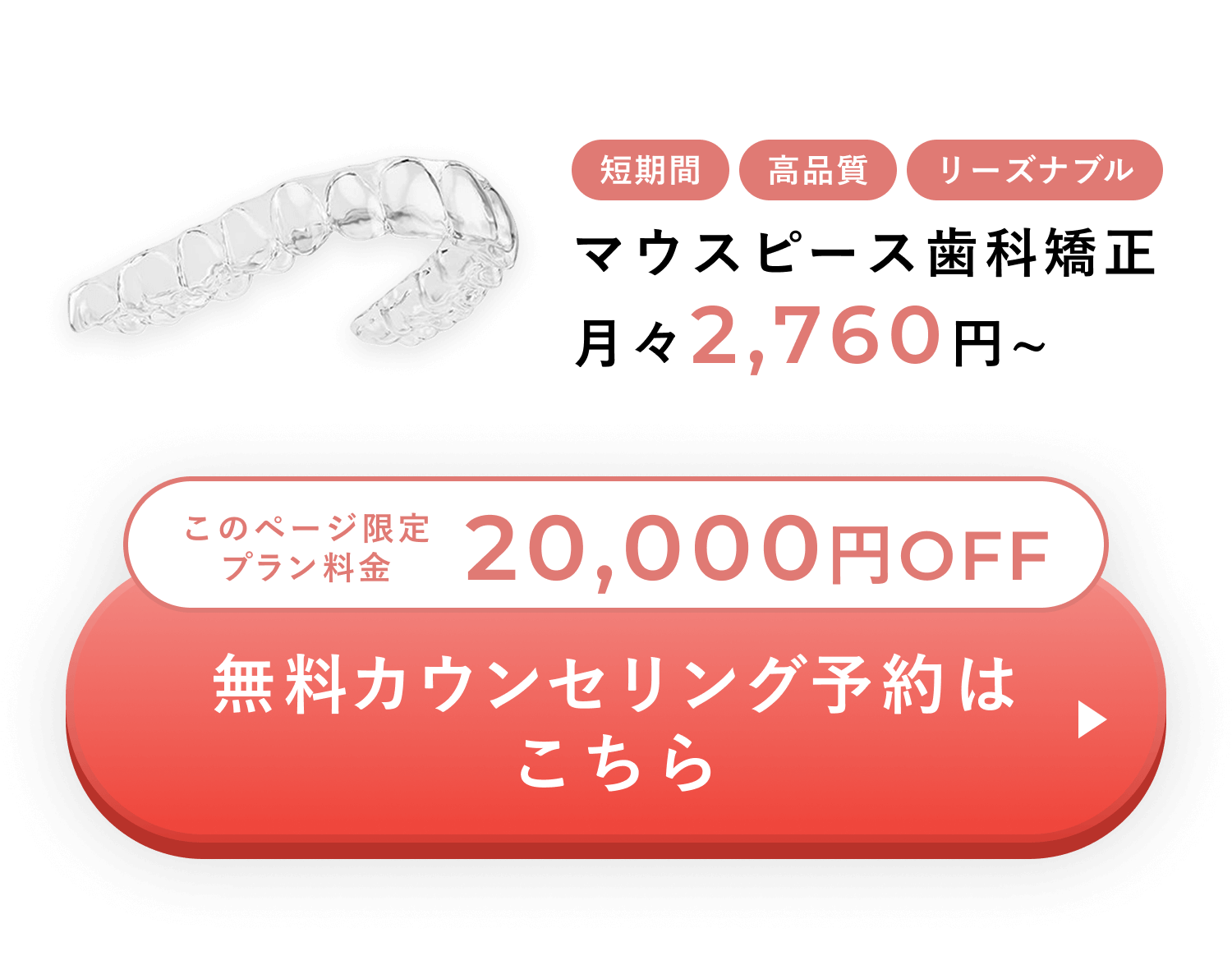 矯正終了後、歯は元の位置に戻ろうとする傾向があります。それを防ぐため、リテーナーと呼ばれる歯の移動を防ぐマウスピースの装着を推奨しております。※リテーナーの費用はプラン料金に含まれています。