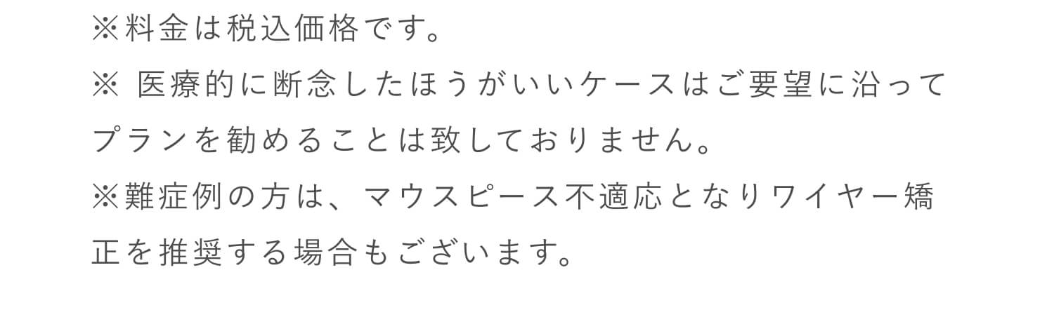 矯正終了後に装着するリテーナーの料金は、プラン料金に含まれております。