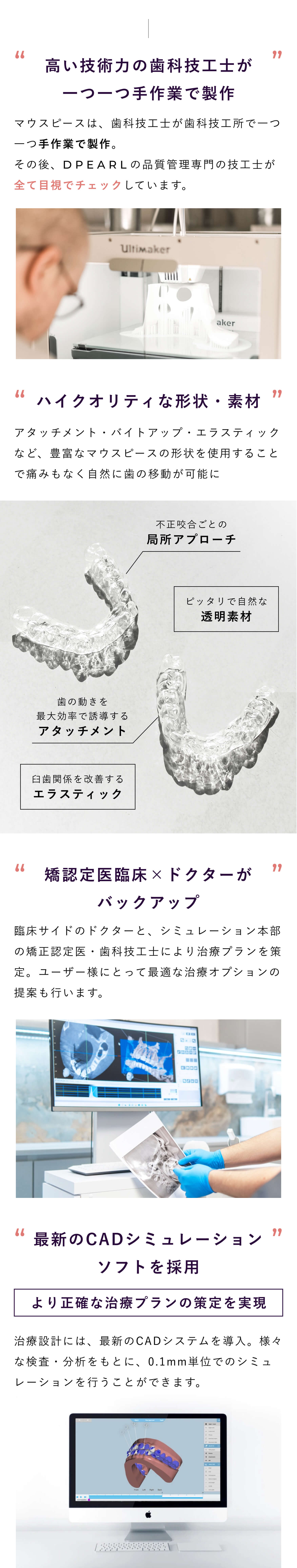 加えて、歯の移動を効率的に行うために、アタッチメントと呼ばれる小さなポッチを歯の表面につけさせていただく場合がございます。ほとんど目立たないですが、審美的に気にされる場合は付けずに治療する計画を立てることもできます。