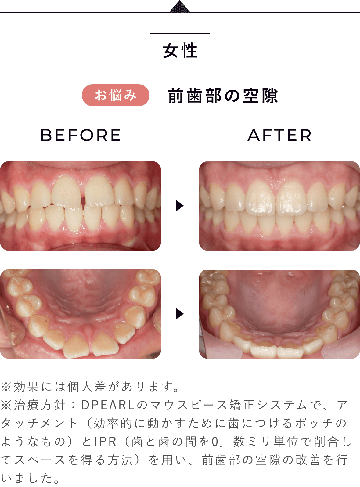 ※治療方針:アタッチメントを用いた前歯部の空隙の改善
