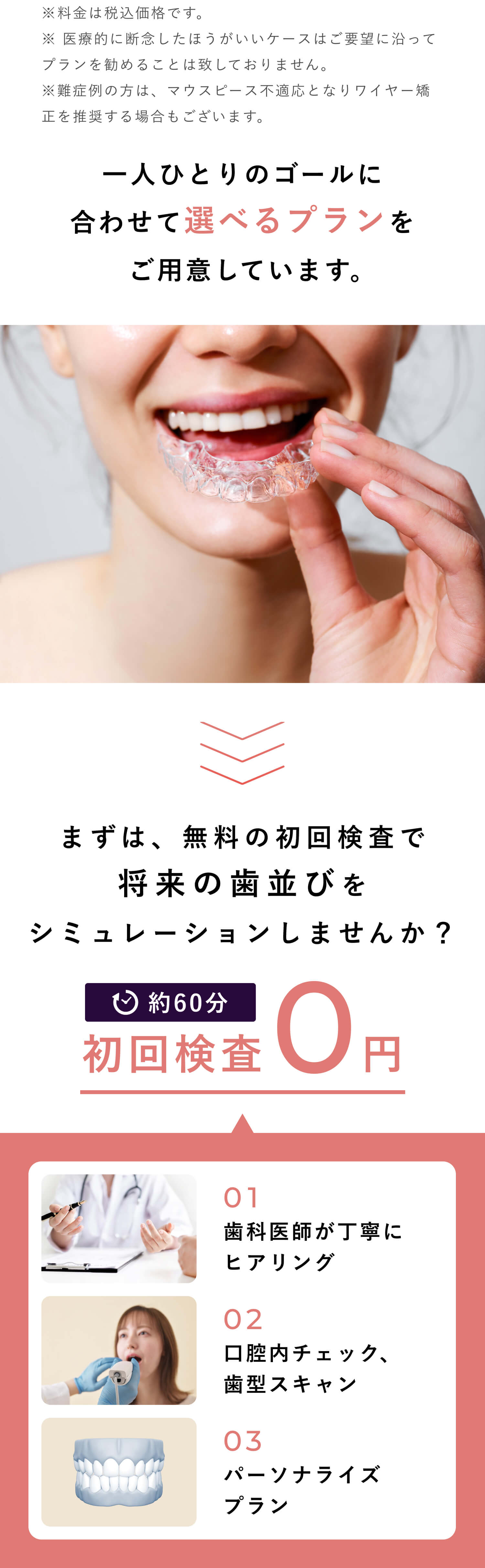 矯正終了後に装着するリテーナーの料金は、プラン料金に含まれております。