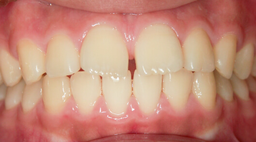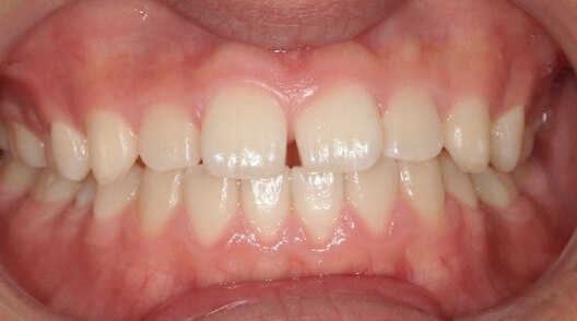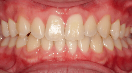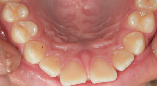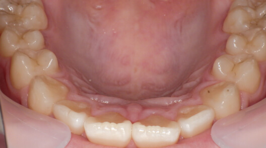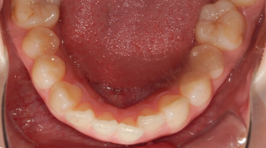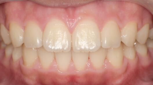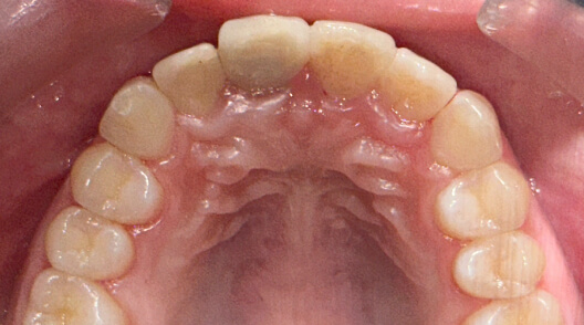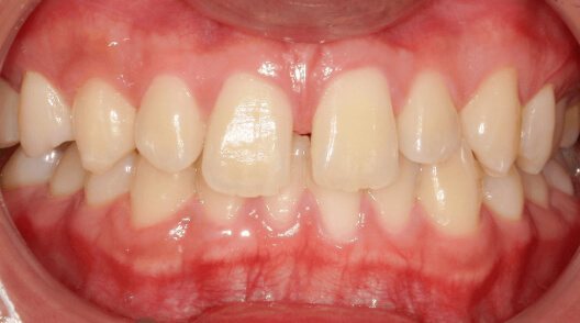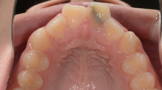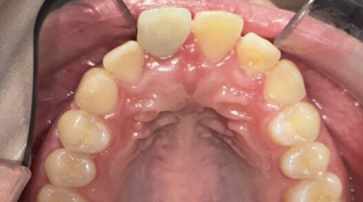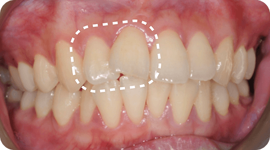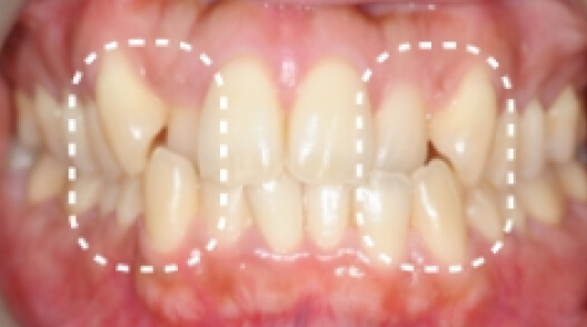 ※治療方針:口蓋側に傾斜している前歯を外側に出すことで歯並びを整列