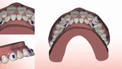 加えて、歯の移動を効率的に行うために、アタッチメントと呼ばれる小さなポッチを歯の表面につけさせていただく場合がございます。ほとんど目立たないですが、審美的に気にされる場合は付けずに治療する計画を立てることもできます。