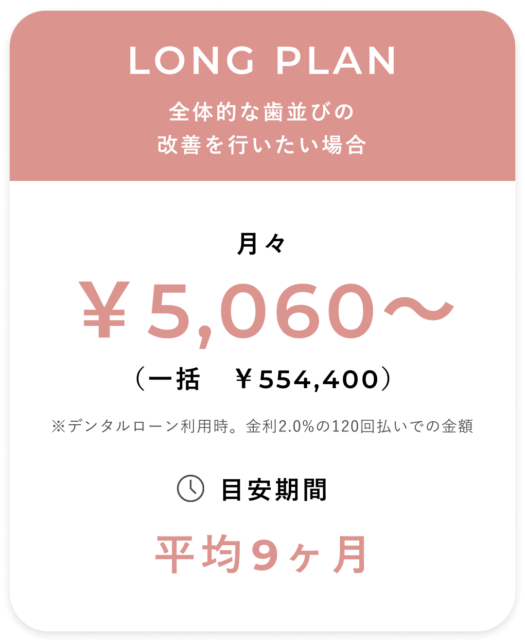 それ以上の分割をご希望される場合は【デンタルローン】もご利用いただけます。デンタルローンの場合は、月々¥7,000〜お支払いが可能です。
